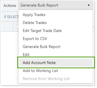 You can also choose Add Account Note in the Actions list to add a trading note to the account.