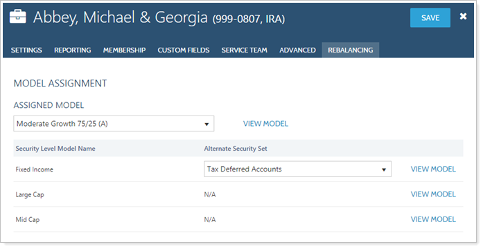 When you need to assign a model to an account, assign an alternate security set to a Security Level model, or review a model/submodel assigned to a specific account, you can use the Model Assignment panel. To learn more about how to use and create models, see Learn More About Models.