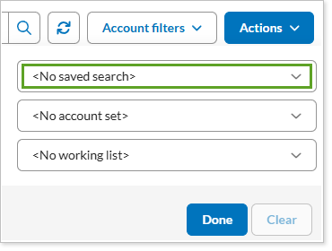 Saved searches allow you to find accounts that meet specific criteria for cash needs, like accounts that need to raise cash or accounts with excess cash. Once you've created these saved search, you can monitor them from your dashboard for easy access. You can also use these saved searches to filter pages and take account on the accounts that meet your criteria.
