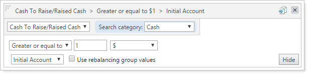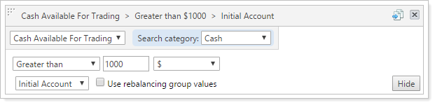 To search for aggregate cash values at the group level, select the Use rebalancing group values check box.
