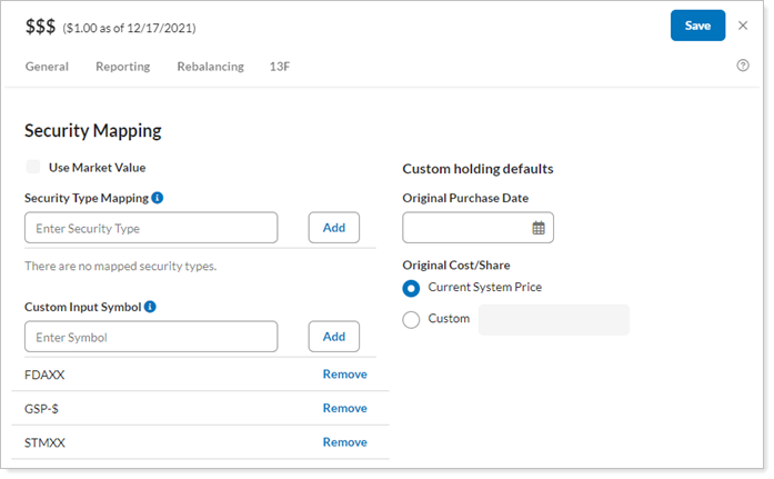 In some cases, you may want to map certain securities to cash to ensure that these liquid funds are treated like sweep cash—$$$—in Tamarac Trading. It is common to have more than one sweep cash security in your portfolio accounting system (PAS).