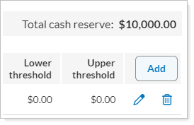 Click Add. This opens the Cash Reserve Settings dialog box.