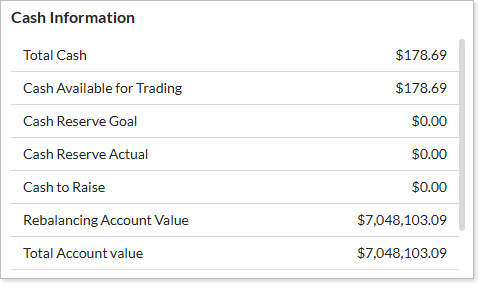 You can view cash information, including reserve amounts, on the Rebalance Summary. This will give you a fuller picture of reserve cash during the rebalance process.