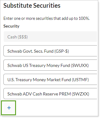 Click + to add additional cash substitutes, if desired. You can add as many as you'd like.