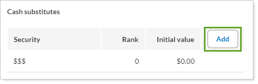 Select Add to add additional cash substitutes, if desired. You can add as many as you'd like.