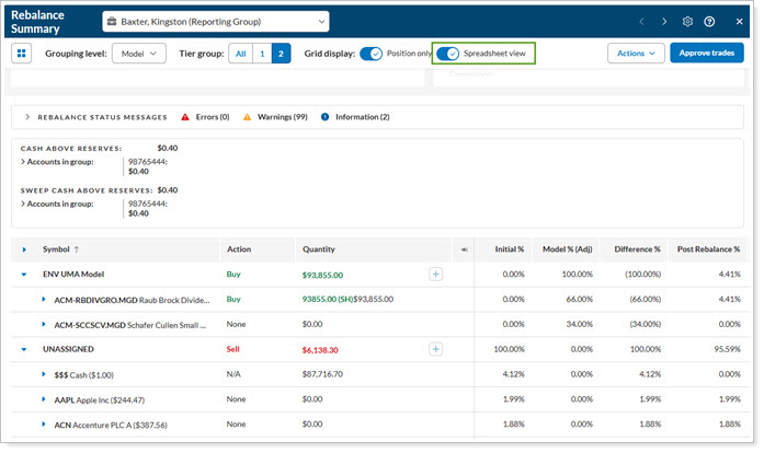After a rebalance, you may have visited Trade Summary to review and approve proposed trades. Over time, many users have switched to Spreadsheet View to complete these tasks.