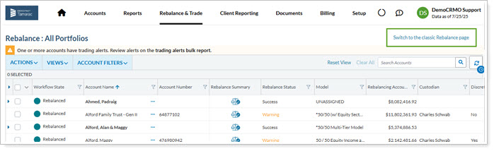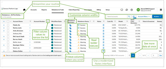 Read bolder statuses. The rebalance status indicators stand out boldly now, so you’ll quickly recognize when to take action on an account.