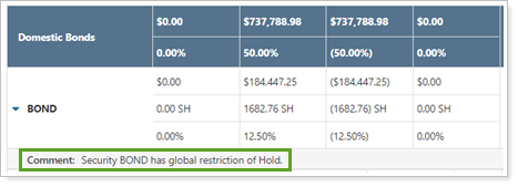 We updated how security messages are shown on the Rebalance Summary so that each message now appears contextually, next to the security it is referring to. As you scroll through the report, you can review security messages without having to scroll to a different part of the report.