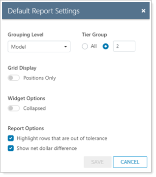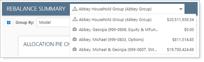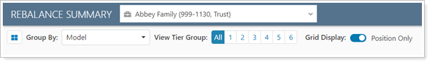 - Tier Group: Select the default tier level you want the Rebalance Summary to show by default. All lets you see every position in every tier of the model or however the report is grouped.