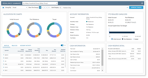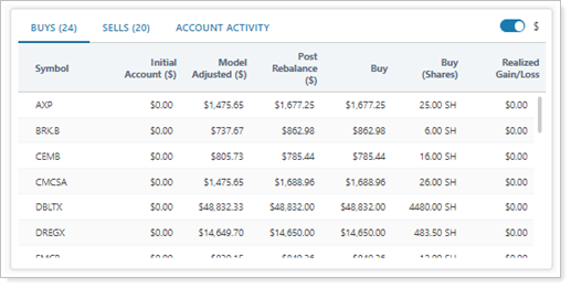 We're making it easier to see granular trade activity with by adding Buys and Sells on the Account Activity widget. Now, you can see a list that summarizes the recommended buys and sells within the rebalance for the account or group you're viewing by security. You can also use this widget to see initial and post-rebalance values of those securities, and more.