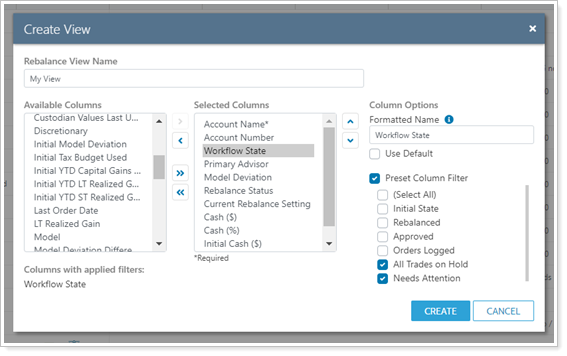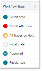 You can read more about each of the workflow states here: Rebalance Page Actions, Views, and Filters.