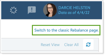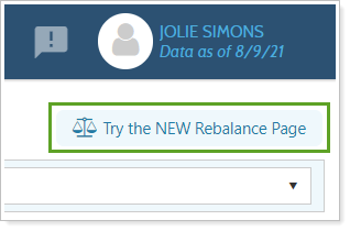 When you select Rebalance in the Rebalance & Trade menu, you'll see the classic version of the Rebalance page with a link that takes you to the new version of the page.