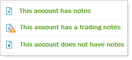 In addition, you can add the Notes column to your page view. Icons in that column let you add or view notes in the account.