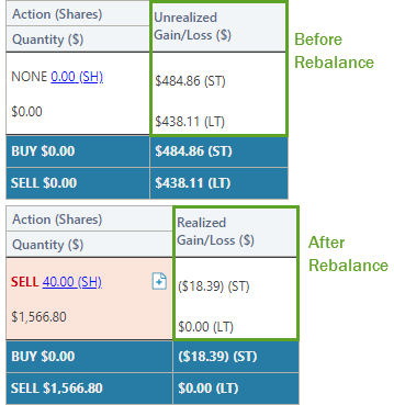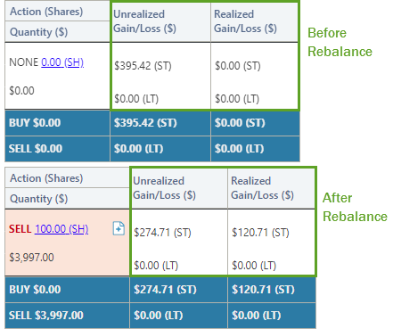Before this release, the Rebalance Summary showed realized and unrealized gain and loss data based on the rebalance state of the account. Before a rebalance, the Rebalance Summary showed the Unrealized Gain/Loss column and after a rebalance, it showed Realized Gain/Loss. This could cause frustration for clients who wanted to see unrealized gain or loss data after a rebalance or after generating a custom strategy.