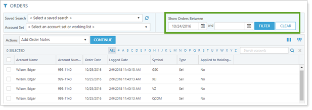 Some firms make larges numbers of trades and, because of this, it can sometimes take a long time to load the Orders page. With this release, we've updated the Orders page so that, by default, the page will filter to show orders on the as of date. You can still view all orders, or filter the orders shown to any dates you choose, by replacing the dates in Show Orders Between.
