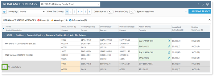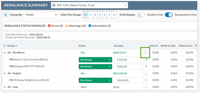 Spreadsheet View on the Rebalance Summary now includes four new Shares columns.