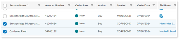 From the Order Blotter, bond traders can manage generic bond orders sent by multiple portfolio managers for client accounts custodied at various custodians. This simplifies oversight and coordination, making it easier to handle complex portfolios and diverse custodial relationships.