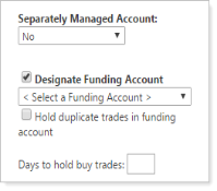 If you want Tamarac Trading to hold duplicate trades in the funding account, select the Hold duplicate trades in funding account check box.