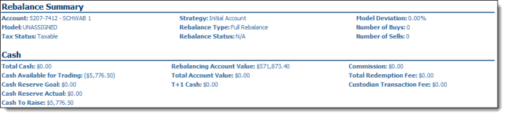 The Rebalance Summary report now shows detailed information on important cash information.