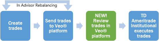 Previously, if you used the TD Ameritrade Institutional Veo® trading integration, your trades were submitted directly to TD Ameritrade Institutional for execution. We've improved this process so that now all trades are sent to the Veo® trade blotter before execution, allowing you time to review all of your trades within Veo® before you submit them. This gives you added assurance that you're submitting the trades you intend to submit.