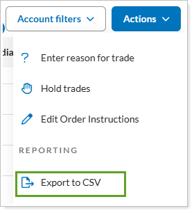 To create a trade, select Create Quick Trade on the report for the account or group you're viewing.