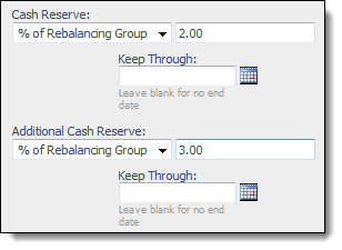 You can now specify the amount of cash reserves and additional cash reserves as a percentage of a rebalancing group.