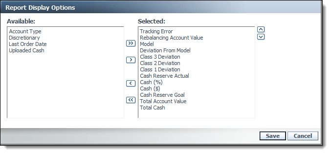 We've added the following columns to the Display Options dialog, which can be added to the Rebalance, Directed Trade, Trades on Hold, Rebalance Review, Trade List, Accounts, and Rebalancing Group pages. In addition to the above, we also added Approved By which can be added to the Trade List page.