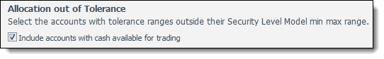 When you view the Allocation out of Tolerance saved search, you now have the option to include accounts with cash available for trading.