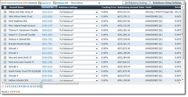 Advisor Rebalancing will not rebalance the selected accounts that are not assigned to the UNASSIGNED model. These accounts will display a rebalance status of Unable to Rebalance.