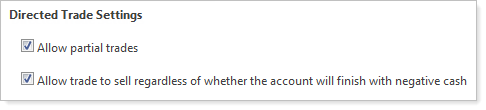 Under Directed Trade Settings, select the Allow trade to sell regardless of whether the account will finish with negative cash check box.
