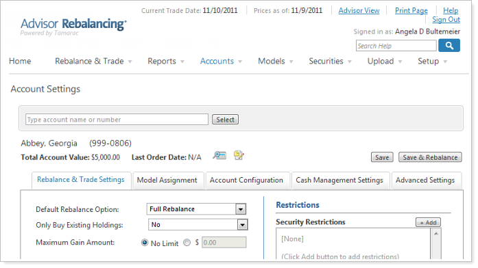 We have received great feedback from clients about the clean look and feel of Advisor View and have used the same approach in the redesign of Advisor Rebalancing. In the last phase of these user interface updates, we'll make adjustments to both Advisor View and Advisor Rebalancing to further match the look and feel between the two products.