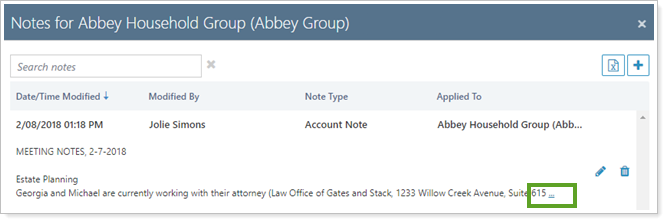 Improved Notes Viewing.The notes dialog box will now only show four lines of text for each note. That way, longer notes won't crowd the window and you can get a better view of the notes in the account. You can still view the full note by clicking on the ellipsis.
