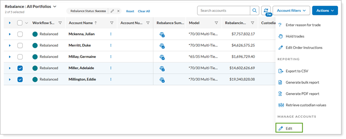 We understand that tools can help you complete your workflows faster and with more ease. With this release, we've added an additional trading tool to help apply actions to multiple accounts all at once. As you may know, the Accounts page allows you to edit individual accounts or groups; however, you can select multiple accounts and/or groups and make the same changes to each one.