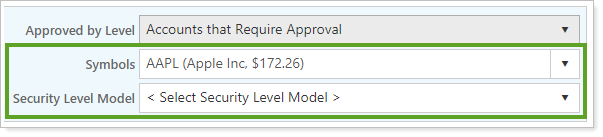 Focus on trades for a specific security or Security Level Model.You can filter the Trade Review page by ticker or Security Level model. This lets you see and edit trades for one security or Security Level model across multiple accounts.