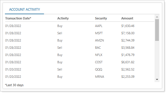 With the Account Activities widget, you'll get a heads-up view of recent activities in the account.