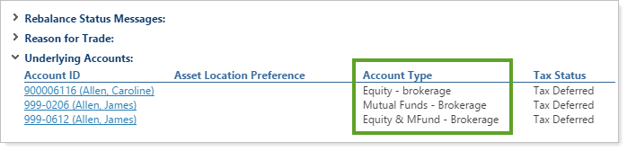 When viewing the Rebalance Summary for a rebalancing group, we've also added an Account Type column in the Underlying Accounts list. This allows you to see the same account type information.