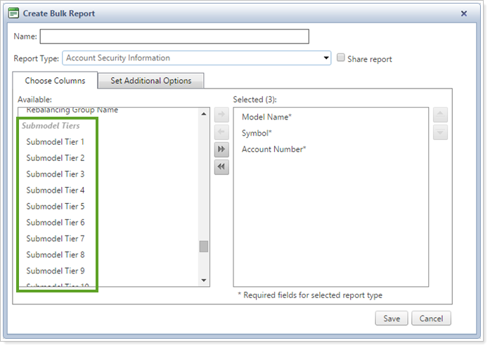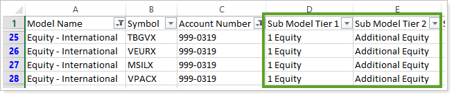 That's why we're introducing a better way to report on your submodel tiers. We've added new Submodel Tier columns on the Account Security Information and Account Model Allocation bulk reports. These new columns allow you to see up to 20 submodels within the bulk report so you can see full reporting on your N-Tier models. You can also use these data to create pivot tables in Excel.