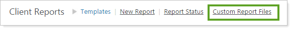 Before, you could see Custom Report Files on the Upload menu. While this page allows you to upload your own files to create client reports, it makes more sense to put this upload option with other client reporting options. Now, you can find the Custom Report Files page under Client Reports on the Reports menu.