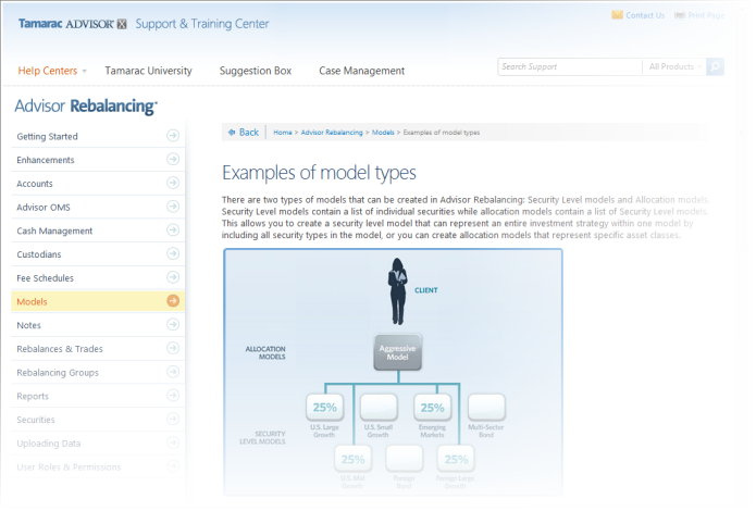 The Support & Training Center offers many improvements over the previous Advisor Rebalancing Help Center. A few key enhancements include: