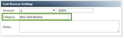 When you're setting up cash reserves, sometimes you want to create a new cash reserve category. To make this process more streamlined, you can now complete both tasks at once - and on the same screen. To do this, simply type the name of the category in the Category box. If the category already exists in Advisor Rebalancing it will appear in a drop-down list. If the category does not exist, Advisor Rebalancing will create it for you when you save the cash reserve.