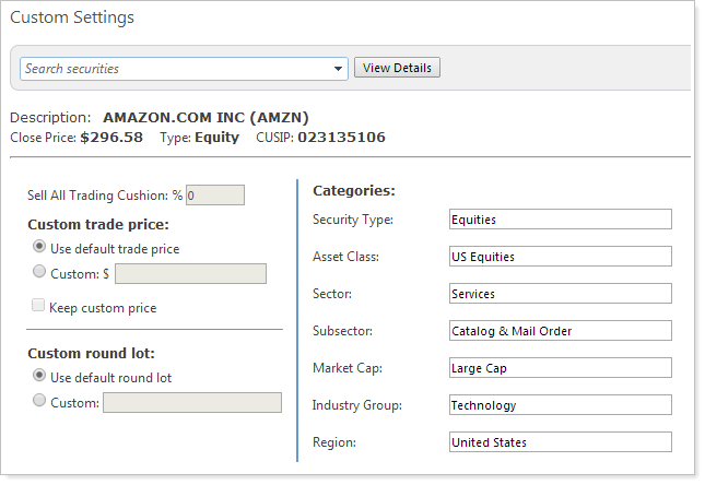 If your firm uses Advisor View, you may recall that the January 2014 product release allowed you to add up to 20 category types for securities. With this release, you can now sync these categories to Advisor Rebalancing, so you can maintain categories in a single place and have consistent categories across Advisor Xi.