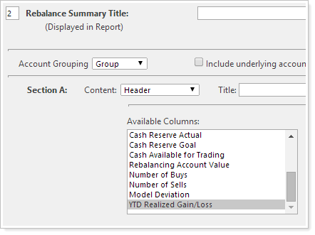 If you use the client reports in Advisor Rebalancing, you can also add YTD Realized Gains/Loss as a column in the Rebalance Summary section.