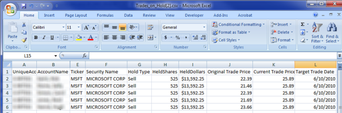 Trades on Hold Bulk Report