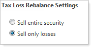 Advisor Rebalancing enables you to sell securities that are in excess of your defined loss threshold at the lot level. Using a new setting on the System Settings Settings page, you can specify, for securities with losses, whether you want to sell out of the security or sell only those lots with losses.