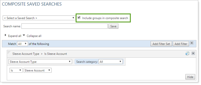 Initially, the Sleeve Account Type saved search filter didn't have the option to use group values. With this release, we've changed the Sleeve Account Type saved search filter to include group values, allowing you to use that filter in Composites that include groups.