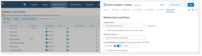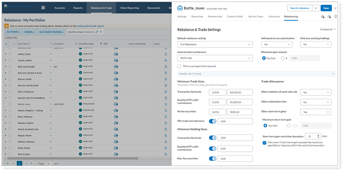 We know how important the Rebalance page is to you and your business. Typically, when you open Account Settings on the Rebalance page, you are adjusting a Rebalancing Account setting. To streamline your process, after this release, you’ll see the Rebalance tab load as the default option when you open Account Settings from the Rebalance page. This enhancement will apply to Accounts and Rebalancing groups.