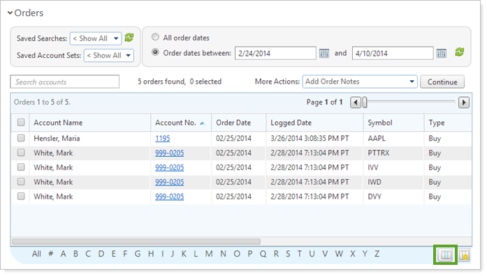 Choose the Columns on the Orders & Reconcile Trades Pages