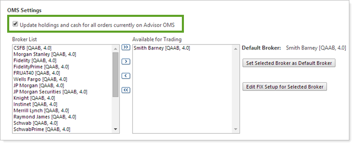 To enable this new functionality, on the System Settings page, select the Update holdings and cash for all orders currently on Advisor OMS check box.