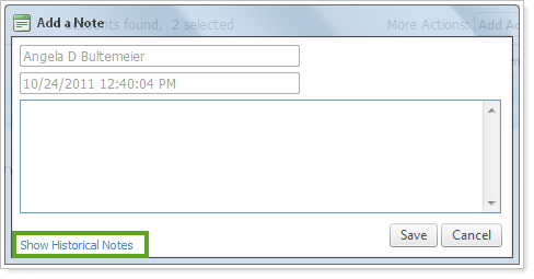 We've made it simpler to view and add notes. You can now add notes by selecting Add Account Note in the More Actions list and then clicking Continue. If you want to view historical notes for the accounts, click Show Historical Notes.