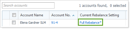 In the previous page layout, you could change the rebalance setting for an account using a drop-down list. In the new release, we've added a dialog for changing the rebalancing setting.